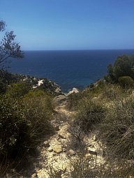 Kralsný výhled na Benidorm a horu Aitsnu. Vede tam žlutá, ale je dost náročné ji najít. Kopec je sice oplocený, ale je tam několik mezer, kudy se dá projít. Nejlepší přístup je od moře - a pozor na navigaci. Není přesná