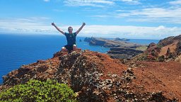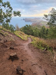 Nad hřbitovem Canical s výhledy na západní ocas Madeiry, kluzké bláto, vítr a stmívá se. Nejtěžsích 380b ever...:)