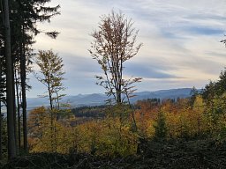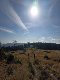V noci poprvé mírně mrzlo. Přes den slunce a pěkné daleké výhledy. Foto růžového fleku jsem pořídila mezi dvěma fotkami dalekých výhledů. Jak se mi to podařilo netuším, nevím zda to je můj prst nebo kapsa, každopádně mě to přijde pěkné zachycení cesty na kopec.