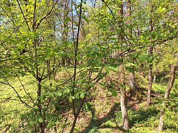 Takový polozarostlý les, ale ještě to šlo. Zbytky hrádku, bez výhledů.