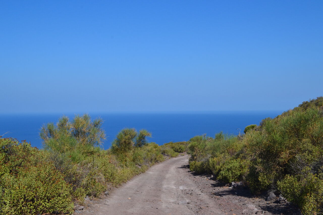 Když jsme byli na sopce Vulcano, učaroval mi protější "kopec" Monte Saraceno a hned jsem začala zjišťovat, jestli se tam dá vylézt. Jarka, naše skvělá průvodkyně, mě ujistila, že ano a navrhla mi trasu autobusem na Vulcano Piano, odkud už si v pohodě dojdu nahoru podle map. V den výstupu jsem se rozhodla, že celou trasu zdolám po svých. Nechala jsem se zavézt Giacomem do přístavu a odtud jsem vyrazila se sluníčkem v zádech po asfaltce ke karabíníkům, kde začínal můj výstup.